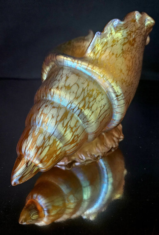 Loetz Art Glass "Candia Papillon" Gold Iridescent Conche Shell Vase c1900