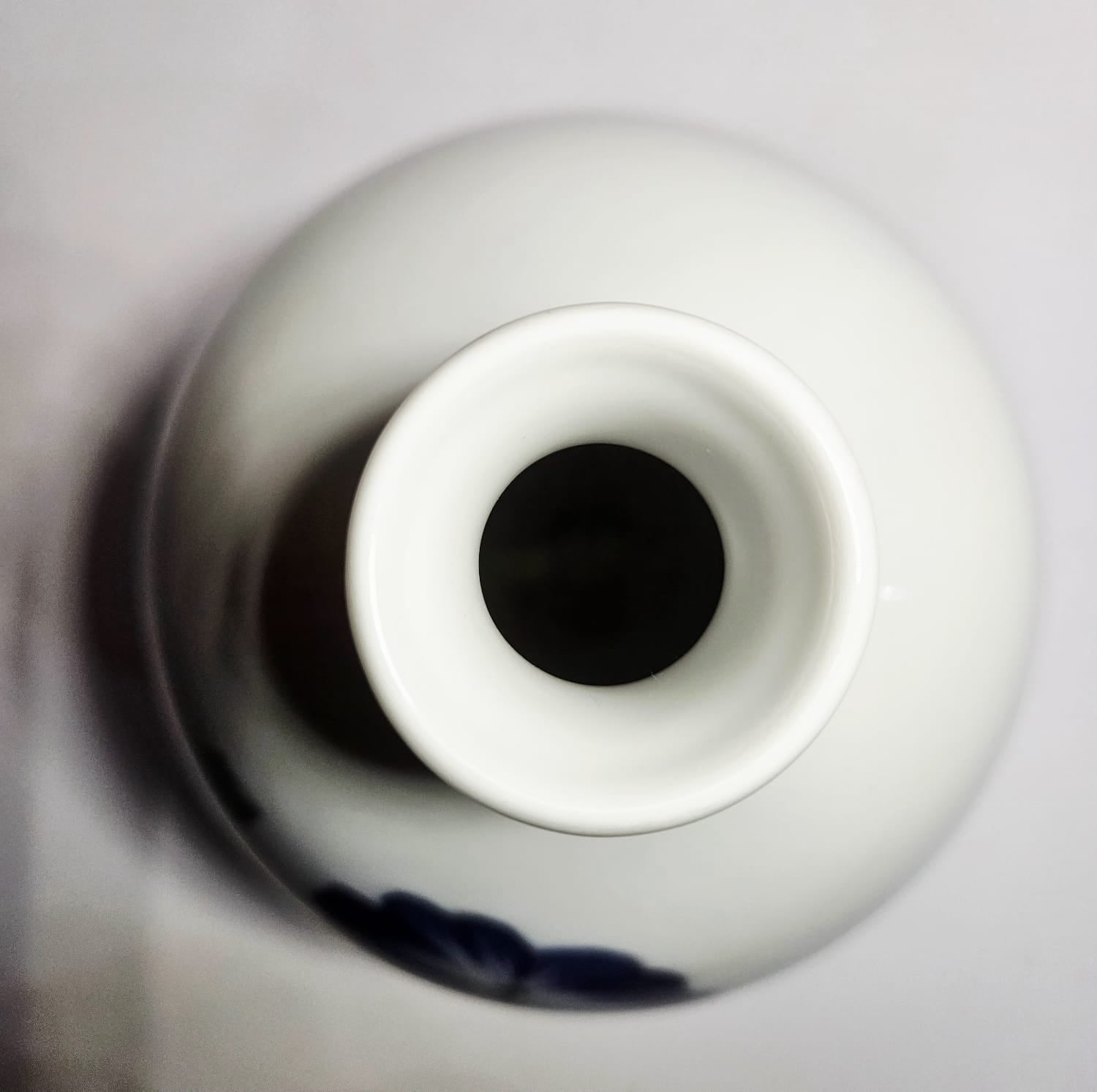 Crafted with the utmost precision, this Royal Copenhagen vase showcases a delicate "Convolvolo" pattern, featuring a serene array of blue flowers that seem to dance around the curvature of the piece.
