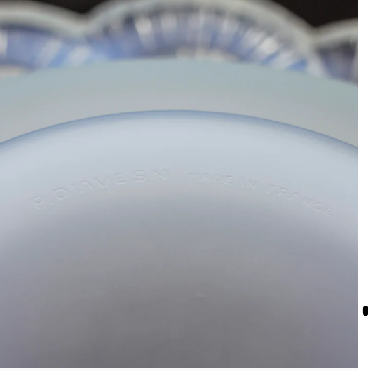 Capture the magic of the Art Deco era with this vintage French opalescent glass Charger designed by Pierre D'AVESN for LALIQUE. Perfect for all occasions, this glossy CHARGER is a true antique piece from around 1925, adding a touch of sophistication to any setting.