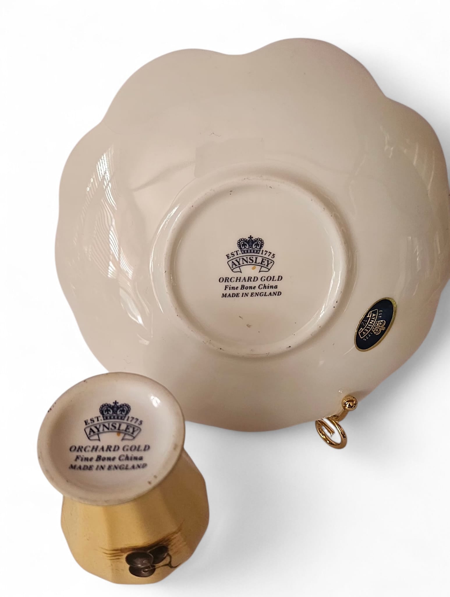 Aynsley "Orchard Gold" scalloped edge bonbon tray and bud vase