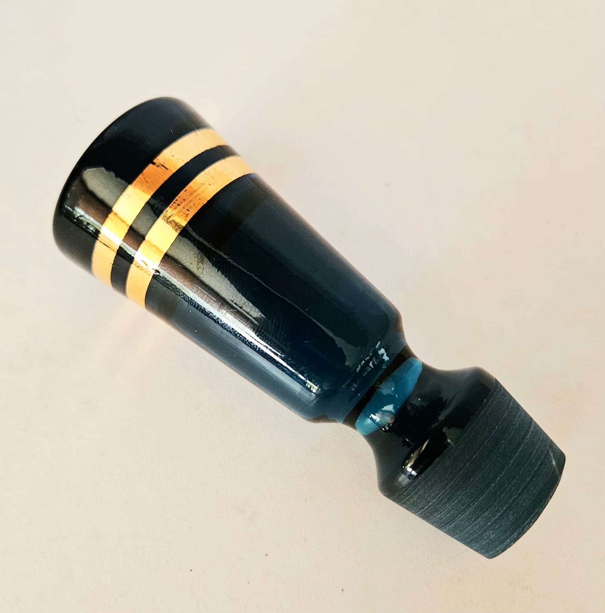 Elevate your home bar collection with the Bohemian Blue and Gold Striped Glass Decanter Set. A vibrant addition to any decor, this set includes seven pieces.