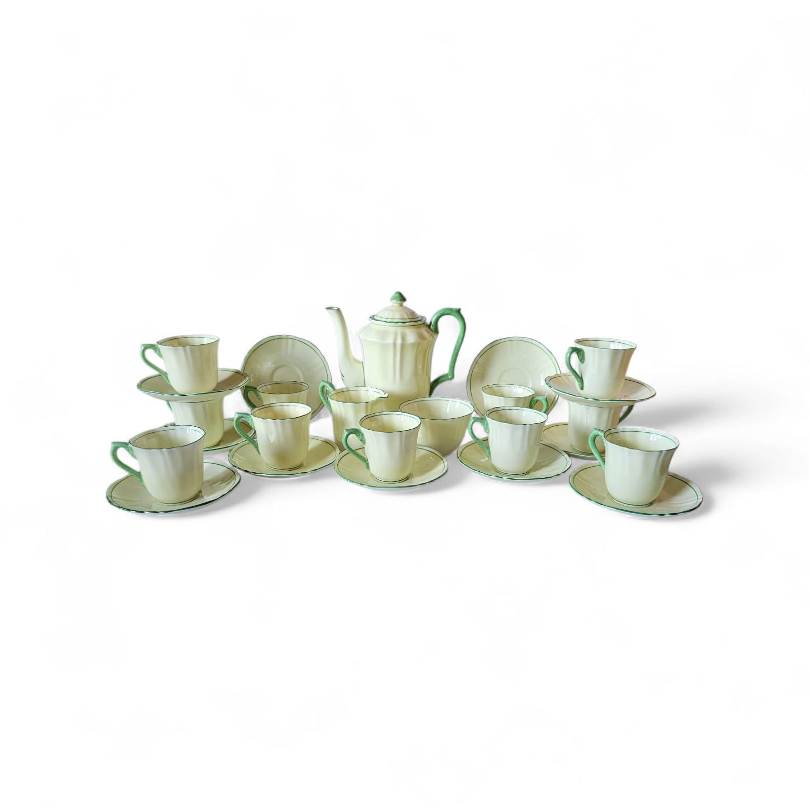 Crown Staffordshire 26 pieces Yellow & Green Coffee Set (c. 1906- 1930)