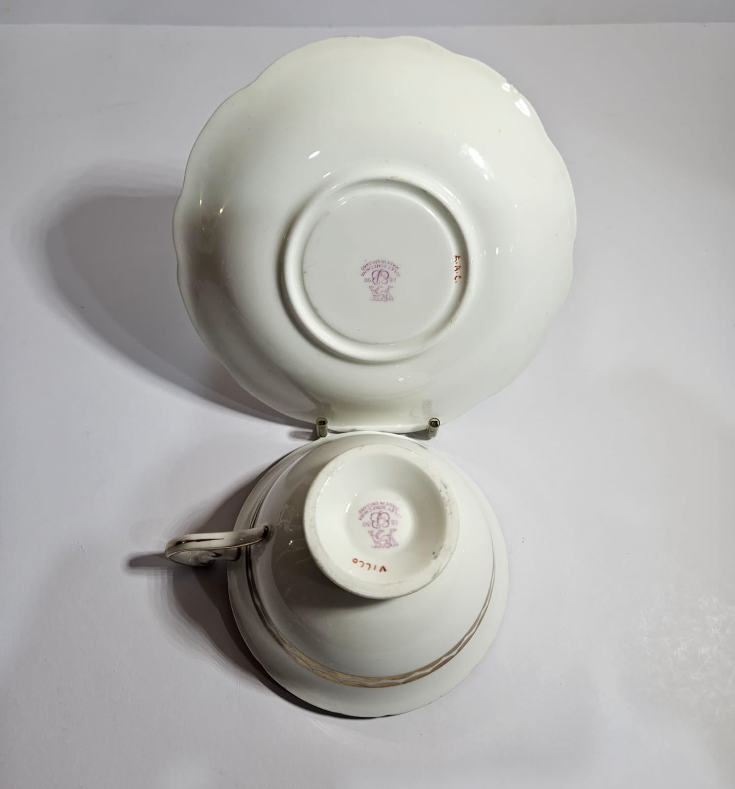 This amazing E.B Foley teacup and saucer are designed with a bright green color, flowers and gold decorative accents. Circa 1970