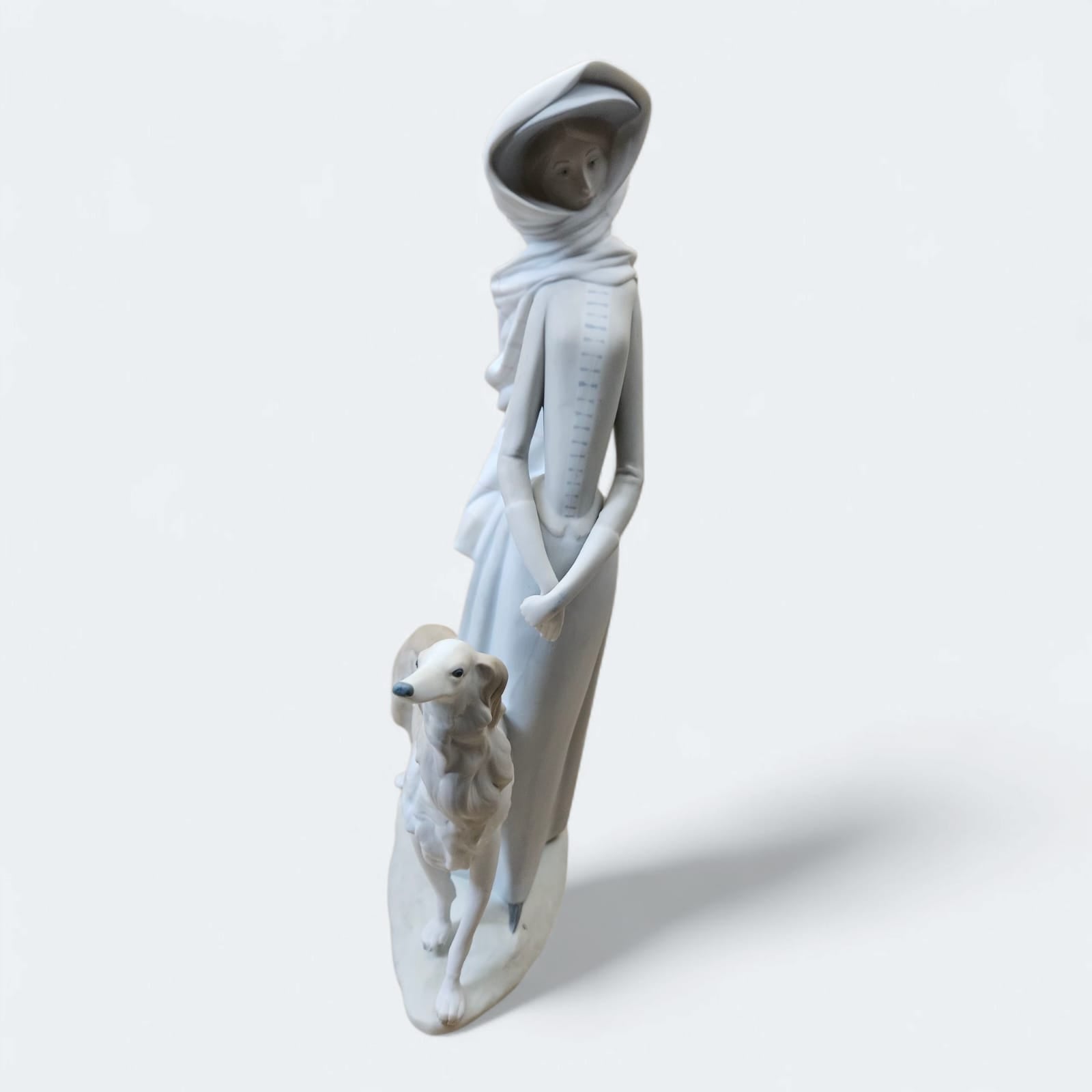 Large Lladro figurine #4594 "Lady with Greyhound" issued in 1969