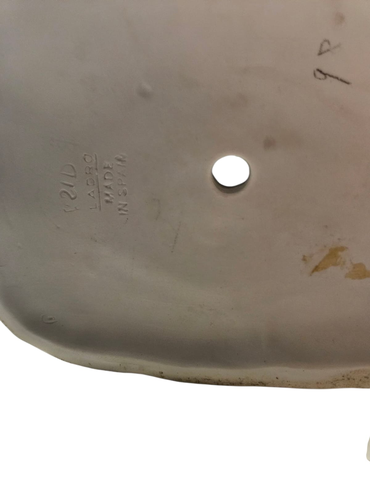 This impressive Lladro figurine, number 4594 titled "Lady with Greyhound," was crafted in 1969 by renowned sculptor Fulgencio Garcia. Standing 33 cm tall and 23 cm wide, this piece was produced in Valencia, Spain, and features an early etched Lladro stamp. Retired in 1981, it remains a distinguished collectible with a retail value of $820. Known in Spanish as "Dama con Galgo," this elegant sculpture captures timeless grace and artistry.
