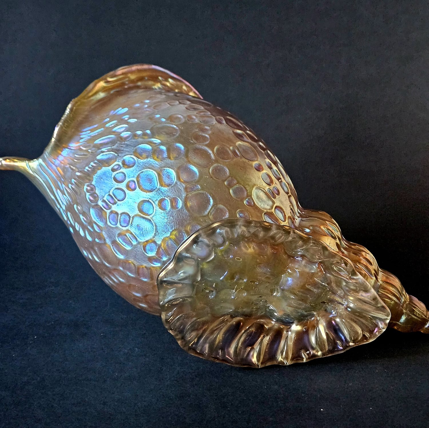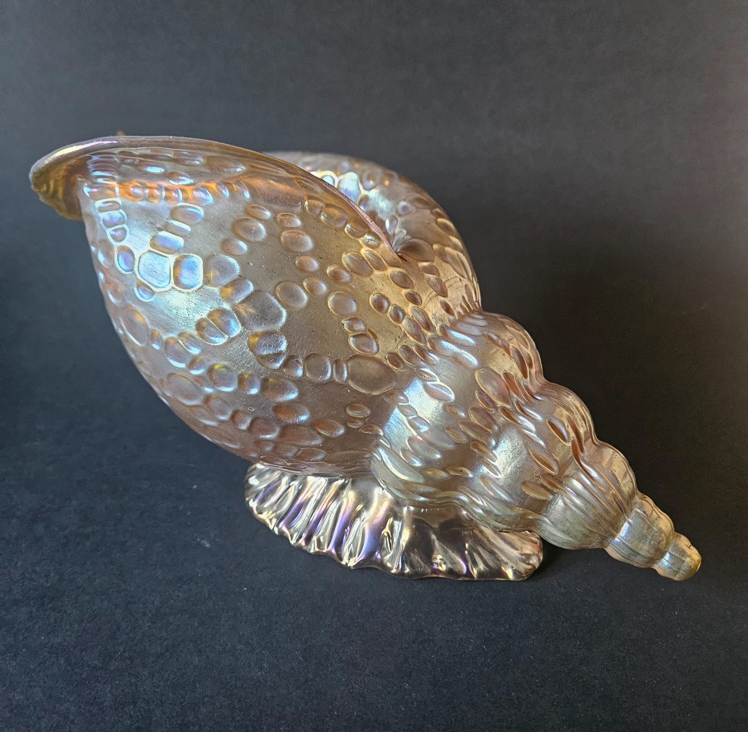 Loetz Austrian Art Glass "Candia Papillon" Gold Iridescent Conch Shell Vase
