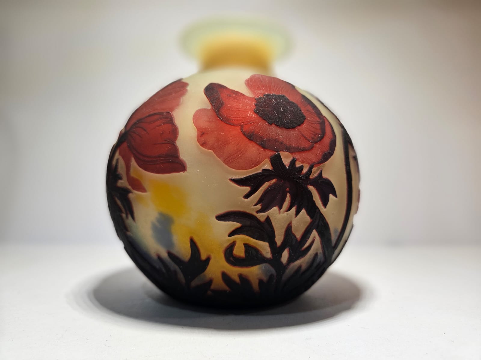 Magnificent Muller Freres Luneville acid-etched Poppies Vase Circa 1920