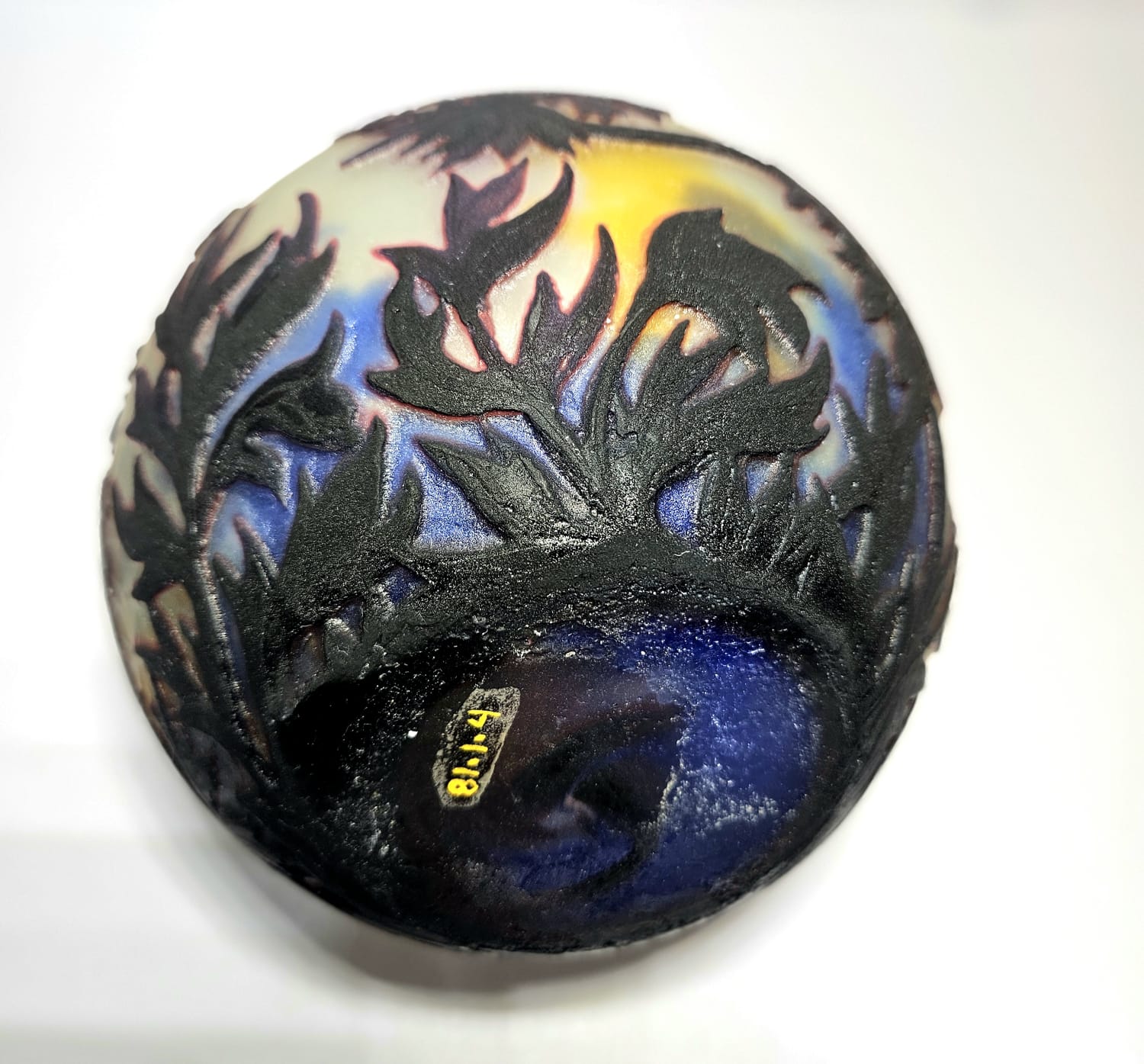 Work of great finesse with all-sided decoration. Height: 15 cm. Diameter: 14 cm.