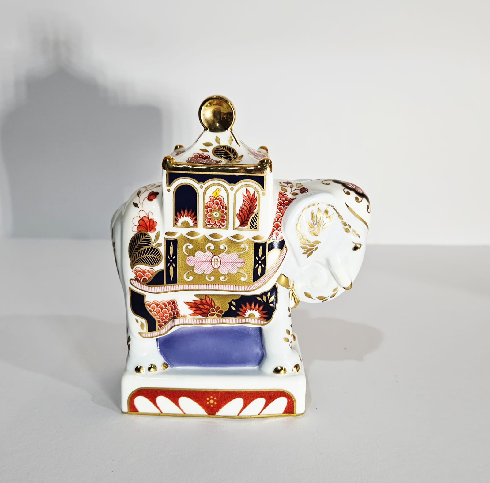 The figurine is made of Fine Bone China and features a decorative howdah saddle with intricate hand-painted designs with 22-carat gold outlines.