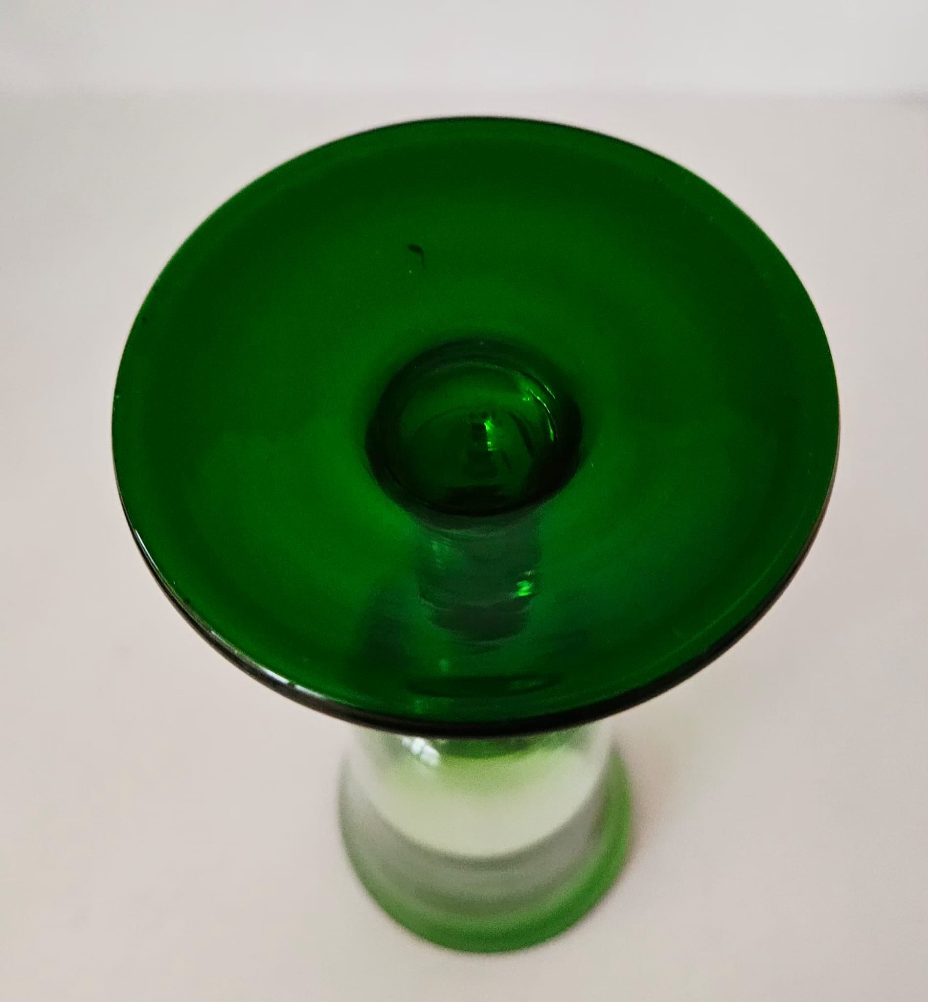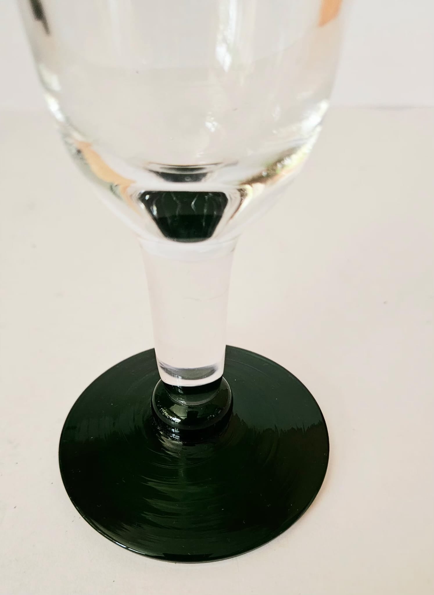 Set of 8 Hand Blown green-rimmed "Mexican" Fluted Wine Glass