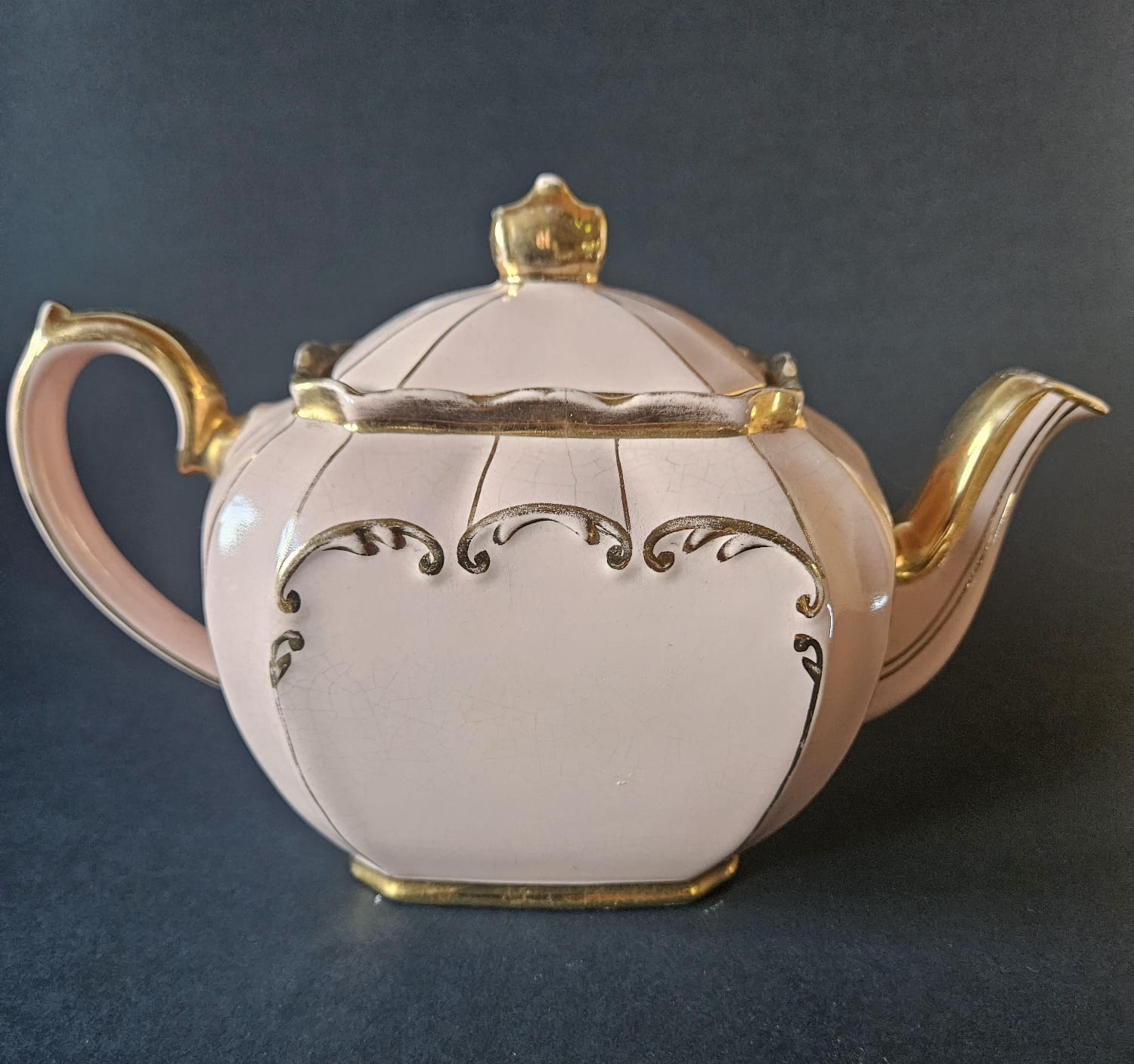 Vintage Sadler Cube Teapot Pink with Gold Gilding 1930s