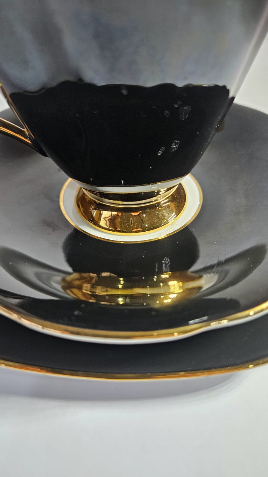Add a touch of elegance to your tea time with this stunning Windsor black bone china Trio. The set features a beautifully crafted tea cup and saucer, adorned with exquisite pink cabbage roses that will catch the eye of any guest. The large pink florals contrast perfectly with the sophisticated black backdrop, making this set a true statement piece for your collection. Crafted in the Staffordshire region of the United Kingdom between 1930-1939, each piece showcases the fine artistry and quality that the Windsor brand is known for.